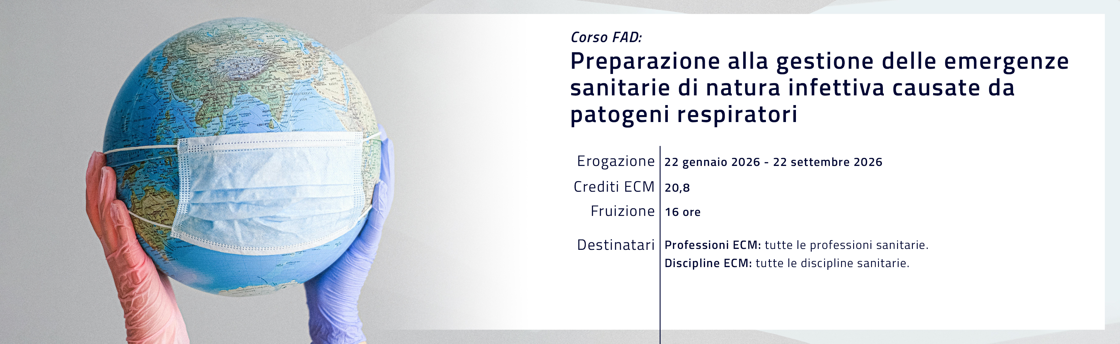 Da questa pagina potrai iscriverti e fruire dei percorsi formativi a distanza per il tuo aggiornamento professionale, in linea con programmi di Educazione Continua in Medicina (ECM). L’ISS è provider nazionale ECM.